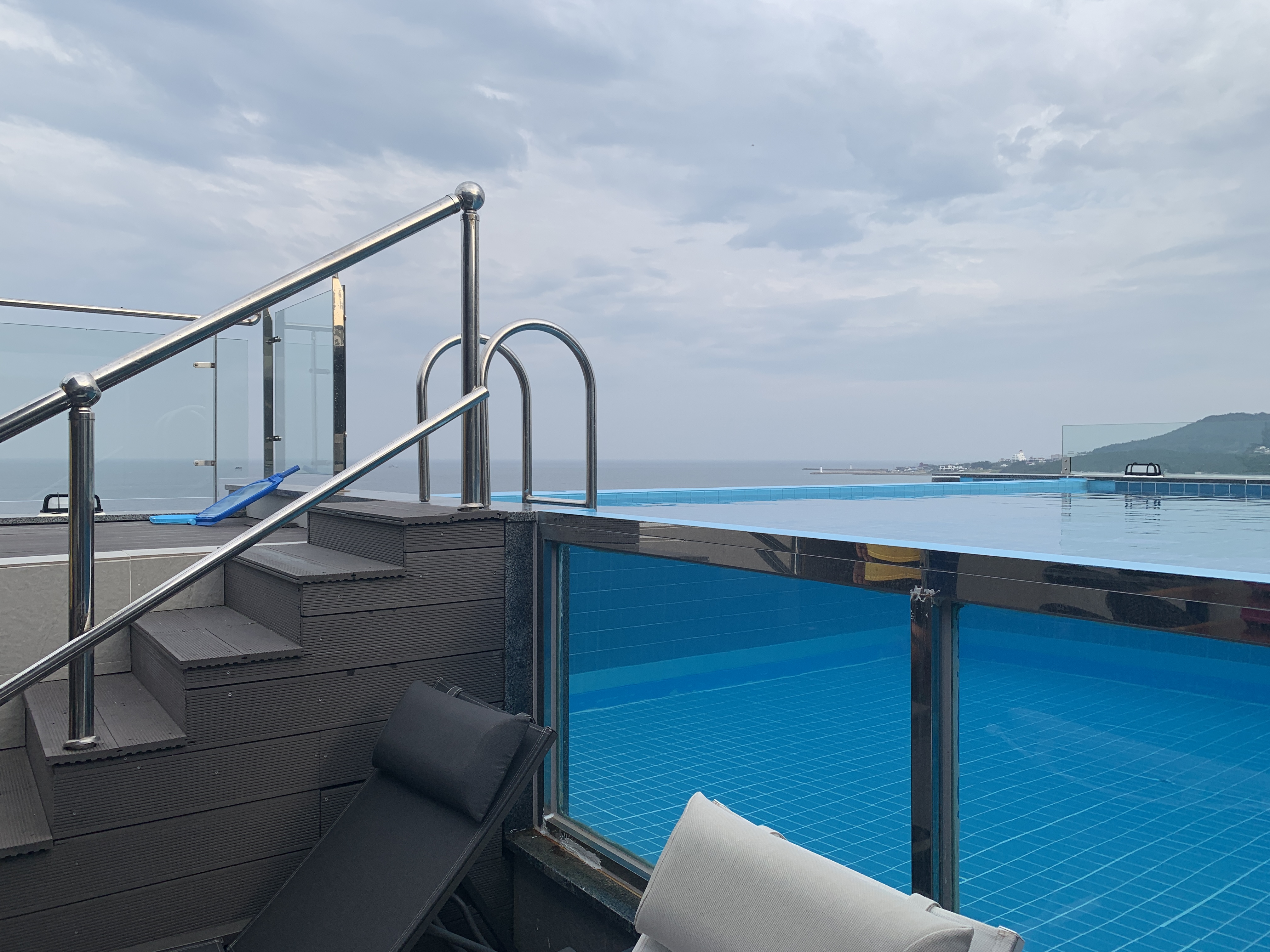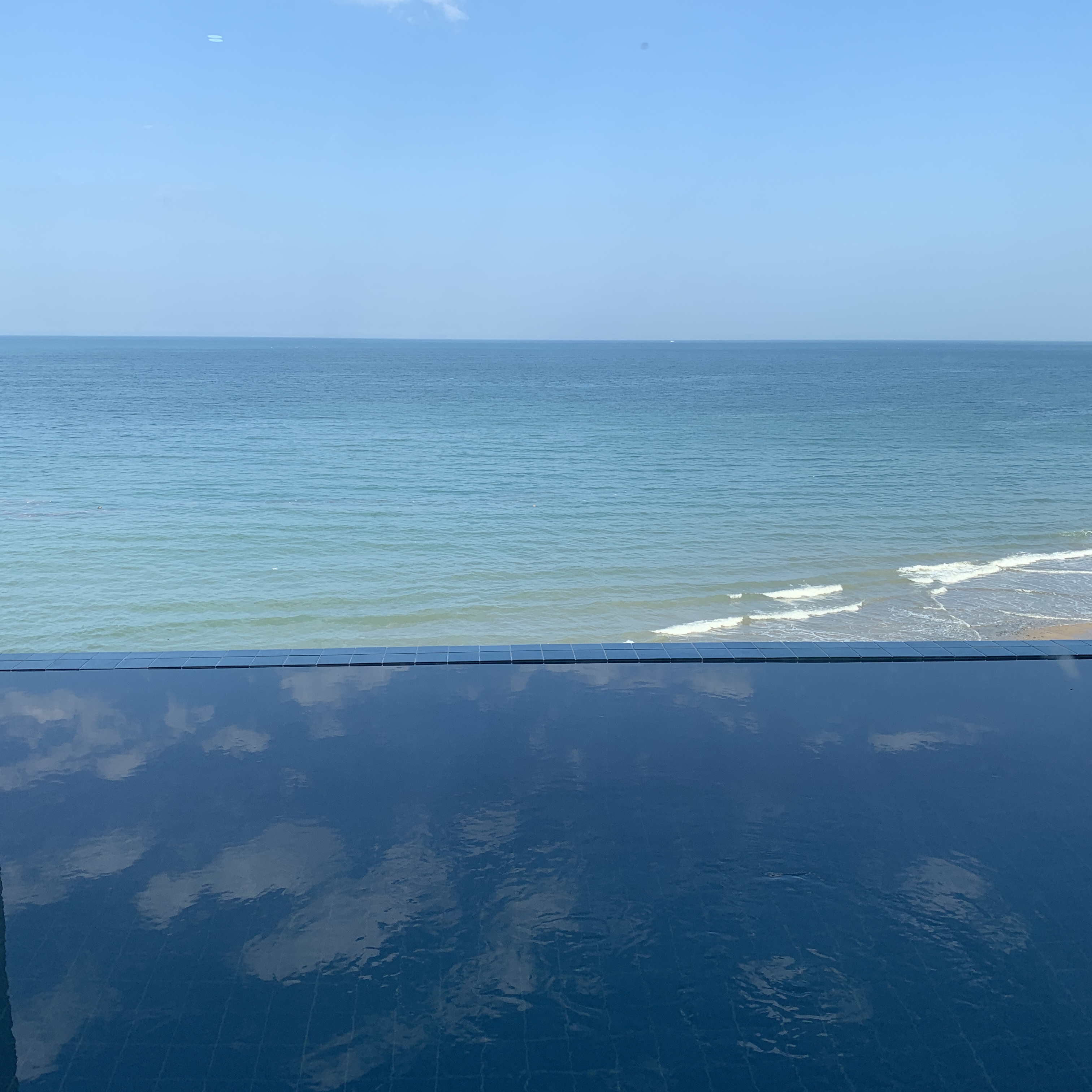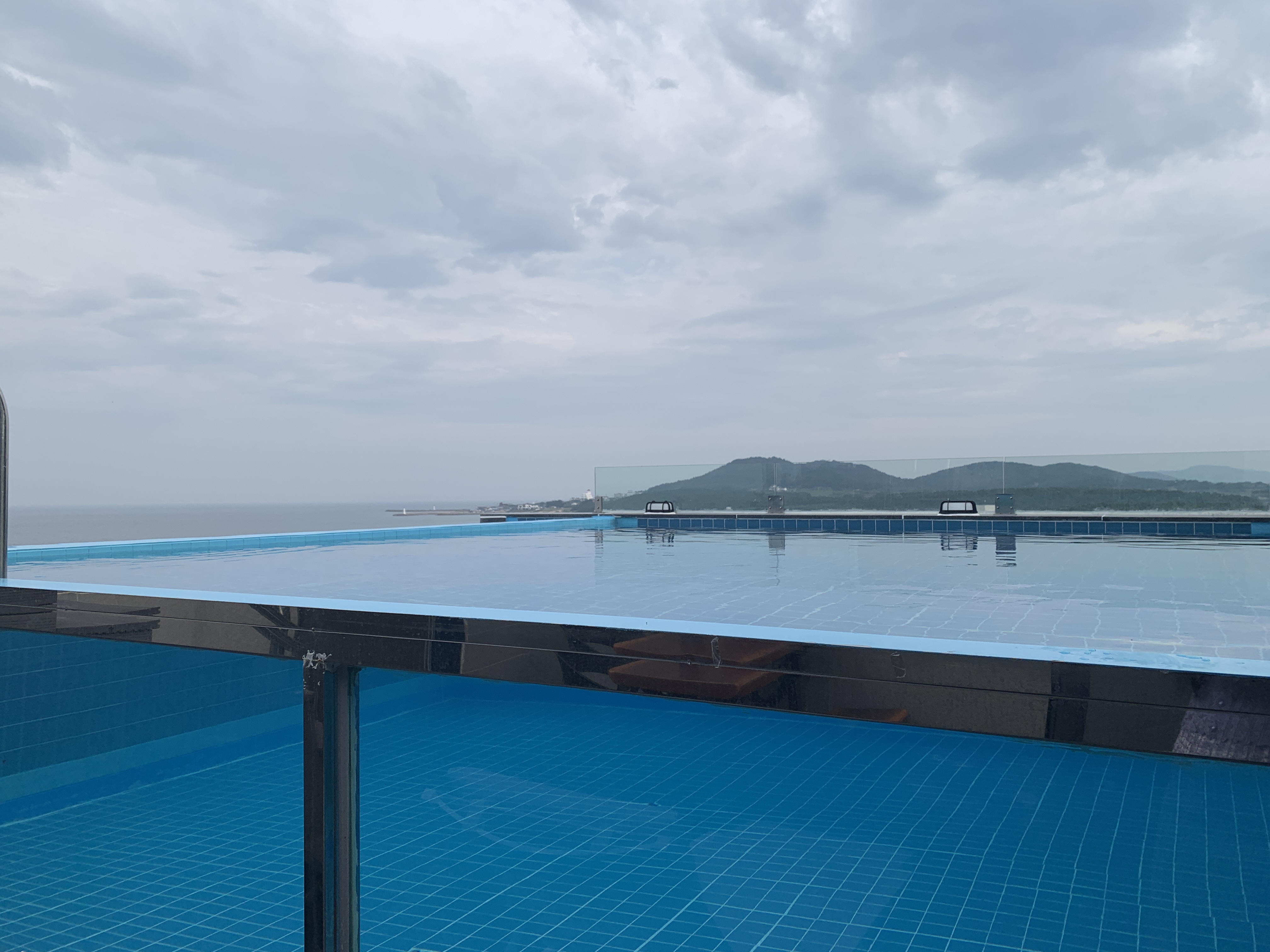 풀에서 바다 바라보는 뷰 사진을 보여드리고 싶은데