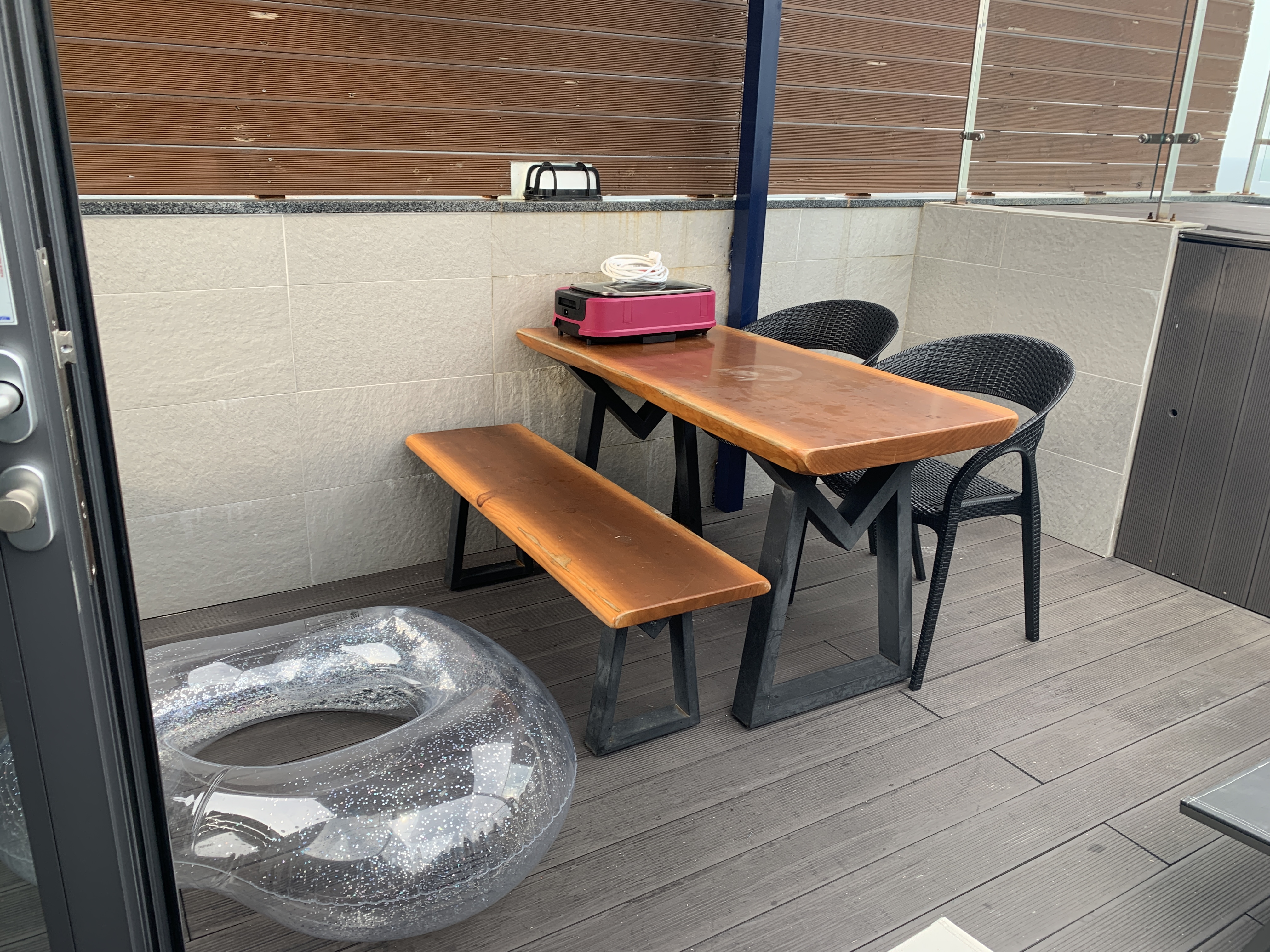 올라가면 바로 앞에 바베큐테이블이 있고요.