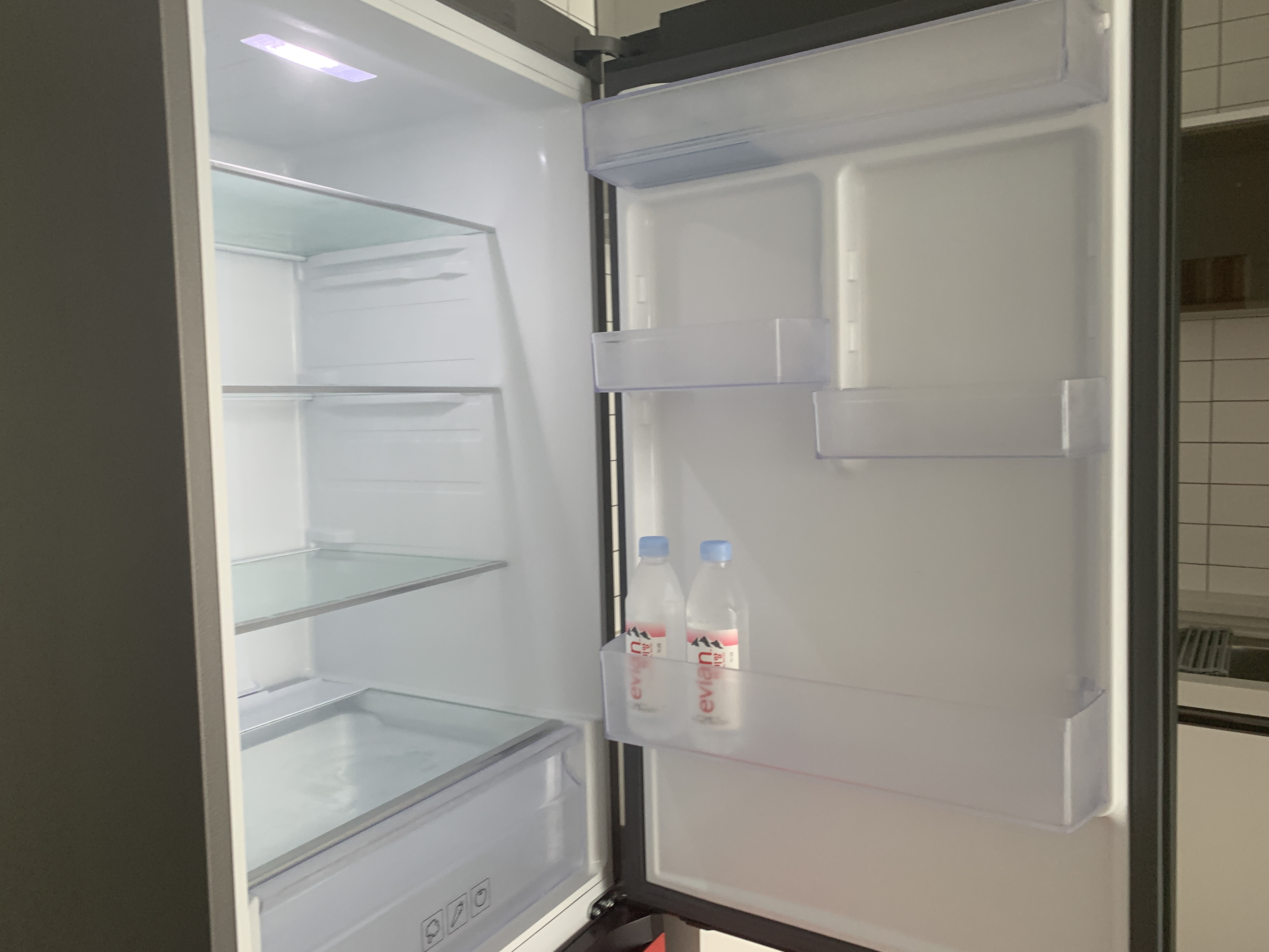 냉장고에 500ml 에비앙 두 병과